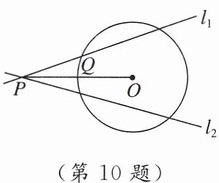 10.C [点拨]如图,当直线$l_1$,$l_2$都与$\odot O$相切时,过点O作$OA⊥$直线$l_1$,则$OA=OQ$.