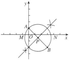 以点$P$为圆心,以$AB$为直径画$\odot P$,$\odot P$与$x$轴的交点即为点$M$,$N$.如图所示,