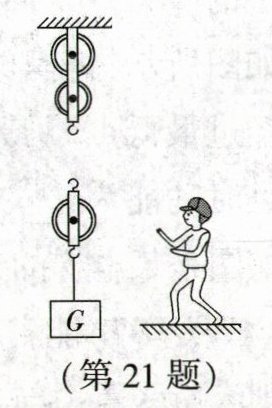 18.某工人用如图所示的装置提升一堆砖.已知每块砖重40N,工人的质量为70kg,他的双脚与地面的接触面积为$400cm^2($不计绳重和摩擦).当工人匀速提升20块砖时,此装置的机械效率为80%,则工人对地面的压强为____