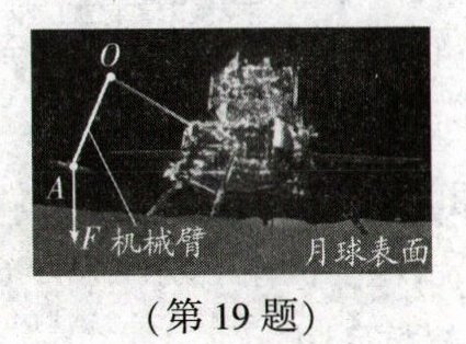 19.(2分)(2024·湖北)2024年6月2日至3日,嫦娥六号完成了人类首次月球背面采样.如图,嫦娥六号的机械臂正绕O点转动,将采集的月球样品送往贮存装置.请画出样品对机械臂上A点的作用力F的力臂l.