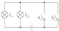 解析:熊耳朵相当于一个开关,用手捏任意一只耳朵,两盏小灯泡会同时发光,则两个开关并联,两个小灯泡可能并联,也可能串联;但是其中一盏灯熄灭,而另一盏灯照常亮,说明两盏灯泡互不影响,因此两盏灯泡一定是并联。