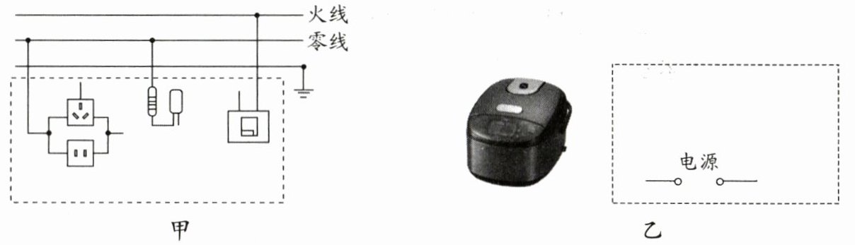(2)(2024·济南)小宇家电饭锅的内部电路元件可简化为两个发热电阻和两个开关,其中$S_{1}$是手动控制开关,$S_{2}$是温控开关.当$S_{1}$、$S_{2}$都闭合时,发热电阻$R_{1}$、$R_{2}$均工作,电饭锅处于加热状态;当温度达到设定温度时,$S_{2}$自动断开,只有$R_{1}$工作,电饭锅处于保温状态;只要$S_{1}$断开,$R_{1}$、$R_{2}$均不工作.如图所示,已画出电源部分,请画出此电饭锅内部的电路图.