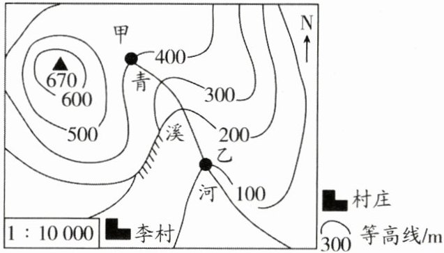 1. 小华在甲、乙两个不同位置开展跨学科研学活动,如图为研学点附近的等高线图($g取10N/kg$),下列说法正确的是 (