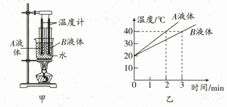 (4)根据实验测得的数据分别描绘出了 A 和 B 两种液体的温度随加热时间变化的图像如图乙,实验表明,