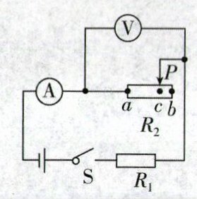 14.如图所示,电源电压恒定.闭合开关 S 后,滑动变阻器的滑片 P 由右侧 b 端移到 c 点的过程中,电压表的示数由 4V 变为 3V,电流表的示数由 0.2A 变为 0.3A,则(