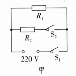 (2)根据P = U²/R可知,电源电压一定时,总电阻越小,电功率越大,当两个开关都闭合时,两个电阻并联,此时总电阻最小,总电功率最大,为高温挡,当只闭合开关S1时,只有R1接入电路,此时为低温挡,故R1的阻值是R1 = U²/P低 = (220V)²/1100W = 44Ω.