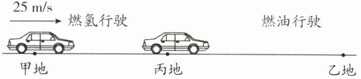阶段二:从丙地开始,由于氢气不足,小华切换汽油为燃料,轿车仍以 $25m/s$ 的速度匀速行驶,此过程中发动机的效率为 $30\%$.