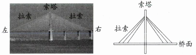 9. 即将通车的常泰大桥为目前世界上跨度最大的斜拉索大桥,索塔两侧的拉索承受了桥梁和车辆的重力,现有一辆载重汽车从桥梁左端匀速驶向索塔的过程中,左侧拉索的拉力