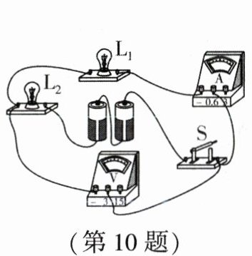 11. 如图甲所示电路中,当闭合开关后,两个电压表$V_{1}$、$V_{2}$的指针偏转均为图乙所示,则灯泡$L_{1}和L_{2}$两端的电压分别为 (