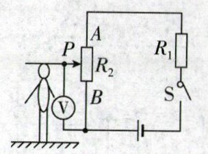 11. 如图是一个简易身高测量仪的工作电路示意图。电源电压 6V 保持不变,电压表的量程为$“0~3V”,R_1 = 20Ω,R_2 $是一根长为 80cm 的均匀电阻丝(规格为 0.5Ω/cm,A、B 为$ R_2 $的两个端点)。滑片 P 可在竖直放置的$ R_2 $上滑动,被测者身高不同电压表示数也会不同,在电压表的刻度上标注相应的身高值,改装完成后,便可测量身高。下列说法正确的是 (
