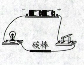13. 将碳棒接到如图所示的电路中,闭合开关后,灯泡发光,说明碳棒是