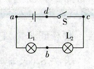 5. 如图所示,闭合开关 $ S $ 时,小电灯 $ L_1 $、$ L_2 $ 都不亮,用一段导线的两端接触 $ a $、$ b $ 两点时,两灯都不亮;接触 $ b $、$ c $ 两点时,两灯都不亮;接触 $ c $、$ d $ 两点时,两灯都亮,对此,下列判断中正确的是 (