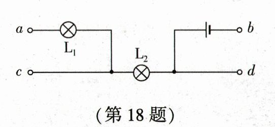 18. 如图所示为部分电路结构,用两根导线在 $ a $、$ b $、$ c $、$ d $ 四个接线柱之间连接,若 $ a $ 与 $ b $ 连接,$ c $ 与 $ d $ 连接,则______(填“$ L_1 $”“$ L_2 $”或“$ L_1 $ 和 $ L_2 $”)发光.