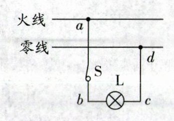 4. (2024·巴中)小李做家务时,房间里的电灯突然熄灭.他用测电笔分别测试如图所示家庭简化电路中的a、b、c、d四点,测a、b两点时氖管均发光,测c、d两点时均不发光.若电路中只有一处故障,则故障可能是 (