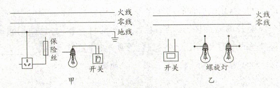 (2)如图乙为家庭照明电路,请用笔画线代替导线,将开关和灯接入电路中,要求两灯并联,且开关控制两灯.