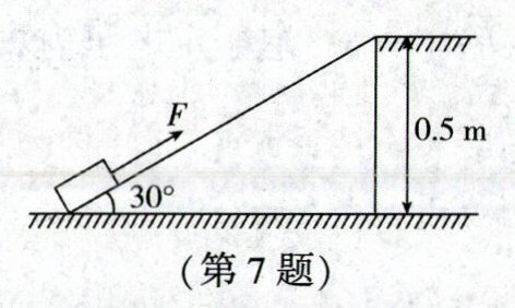7. (2024·眉山)如图是小龙“测量斜面机械效率”的实验装置,斜面粗糙程度相同.他用平行于斜面向上的恒定拉力F,将重6N的物体以1m/s的速度匀速拉到斜面顶端,测得斜面的机械效率为75%.则下列说法正确的是 (