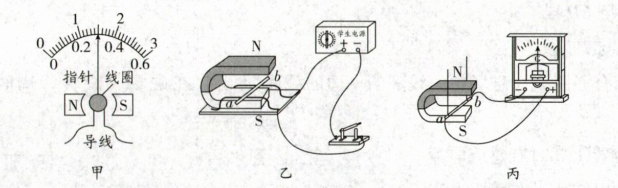 (1)分析题图甲可知,电流表的线圈处在磁场中,通电线圈在磁场中受力的作用,带动指针发生偏转,电流表的工作原理与电动机工作原理相同。