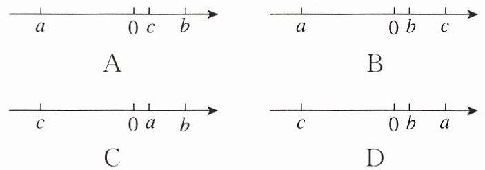 2. 已知有理数a,b,c满足$|a|>|b|>|c|$,这三个数在数轴上对应的点的位置可能是(
