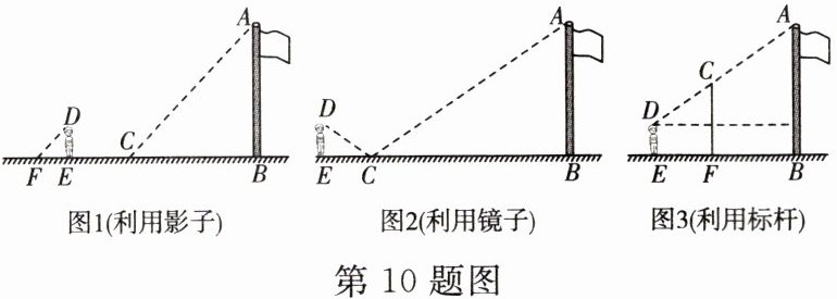 10. [应用意识]为测量水平操场上旗杆的高度,九(2)班各学习小组运用了多种测量方法(如图).