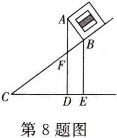 8. 如图,一只箱子沿着斜面向上运动,箱高AB= 1.2 m. 当BC= 3 m时,点B离地面的距离BE= 1.8 m,则AD的长为