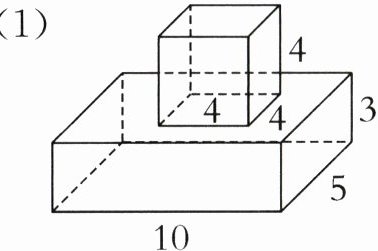 (2)摆成的长方体正好放满它右边的无盖纸盒,做这个纸盒至少要用纸板多少平方分米?