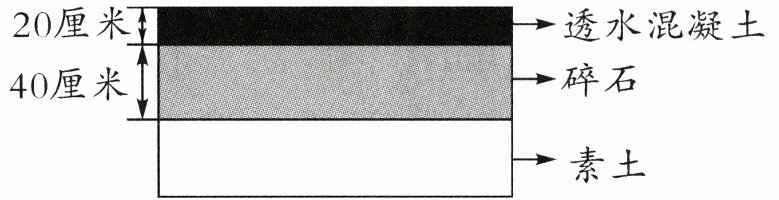 1. 新情境 透水材料 透水材料的应用不仅有助于减少城市洪涝灾害,还能有效补充地下水,改善城市生态环境。一个占地1500平方米的广场,现需要铺设透水材料,截面如下图所示。