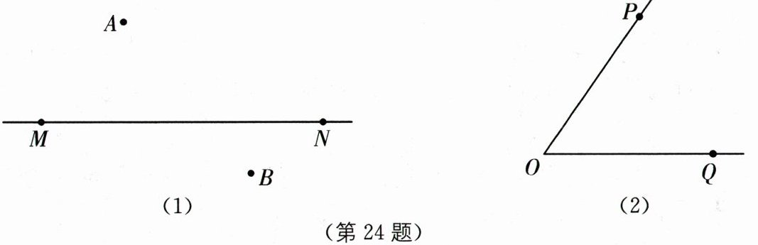 ①利用无刻度的直尺和圆规,在射线$OQ的下方作\angle OQR$,使得$\angle OQR= \angle POQ$(不写作法保留作图痕迹);