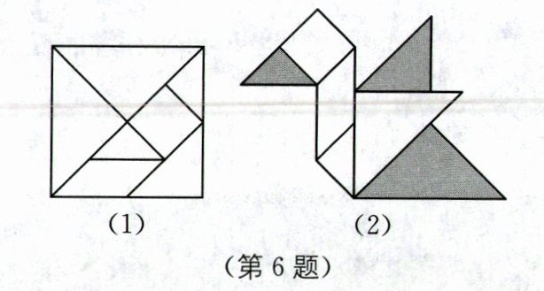 6. 用如图(1)所示的一副七巧板,拼成图(2)的图案,若七巧板面积为 16,则图(2)中阴影部分的面积是(