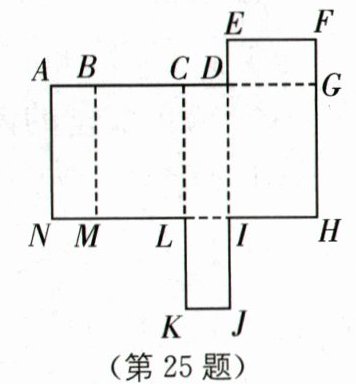 25.(10 分)(2024·陕西宝鸡金台区期末)如图是长方体的平面展开图,设$AB= x$,若$AD= 4x,AN= 3x$.