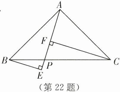 22.(10分)(中考新考法 探究不同条件下的数量关系)如图,已知在△ABC中,∠BAC= 90°,AB= AC,点P为BC边上一动点(BP<CP),分别过点B,C作BE⊥AP于点E,CF⊥AP于点F.