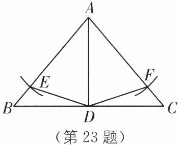 23.(10分)(2023·苏州中考)如图,在△ABC中,AB= AC,AD为△ABC的角平分线.以点A圆心,AD长为半径画弧,与AB,AC分别交于点E,F,连接DE,DF.