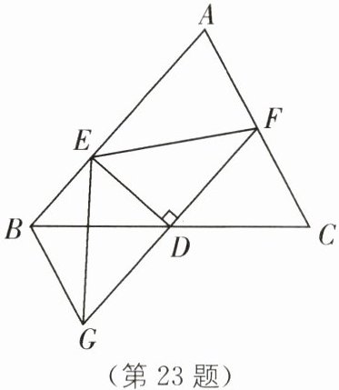 23.(10分)如图,在△ABC中,D为BC的中点,过点D的直线GF交AC于点F,交AC的平行线BG于点G,DE⊥GF,并交AB于点E,连接EG,EF.