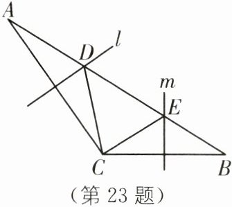 23. (10分)如图,直线l与m分别是△ABC的边AC和BC的垂直平分线,l与m分别交边AB于点D和点E.