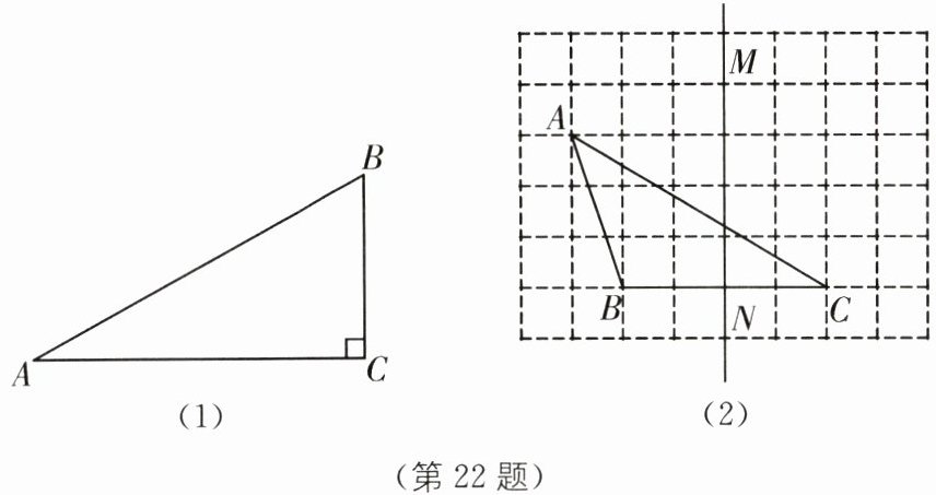 (2)如图(2),在每个小正方形的边长均为1个单位长度的方格纸中,有△ABC和直线MN,点A,B,C均在小正方形的顶点(网格点)上.