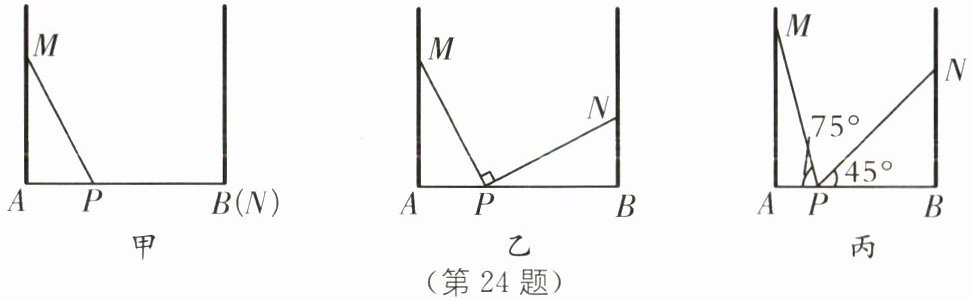 24.(12分)(2025·无锡新吴区期中)如图是小明家中的三个房间甲、乙、丙的截面图,他将一个梯子斜靠在墙上,梯子顶端距离地面的垂直距离记作MA,如果梯子的底端P不动,顶端靠在对面墙上,此时梯子的顶端距离地面的垂直距离记作NB.