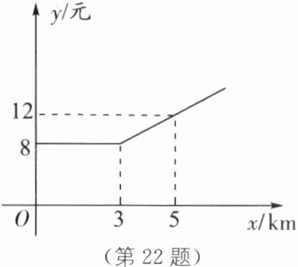 22.(10分)某市出租车计费方法如图,x(km)表示行驶里程,y(元)表示车费,请根据图象回答下列问题: