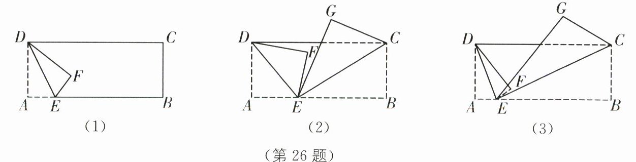 26.(14分)(中考新考法 证明几何结论)(2025·苏州昆山期末)已知长方形纸片ABCD,点E在AB边上,连接DE,将△ADE沿DE翻折,使得点A落在点F处.