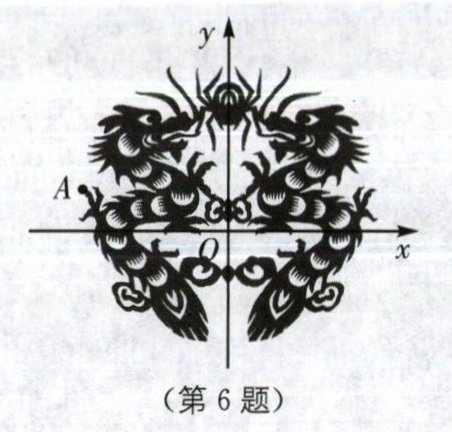 6. (2024·通辽中考)剪纸是我国民间艺术之一,如图放置的剪纸作品,它的对称轴与平面直角坐标系的坐标轴重合,则点A(-4,2)关于对称轴对称的点的坐标为(
