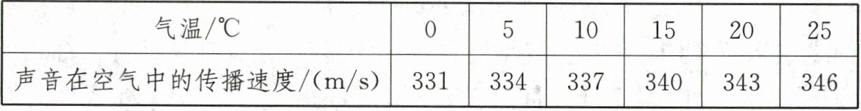 |声音在空气中的传播速度/(m/s)|331|334|337|340|343|346|