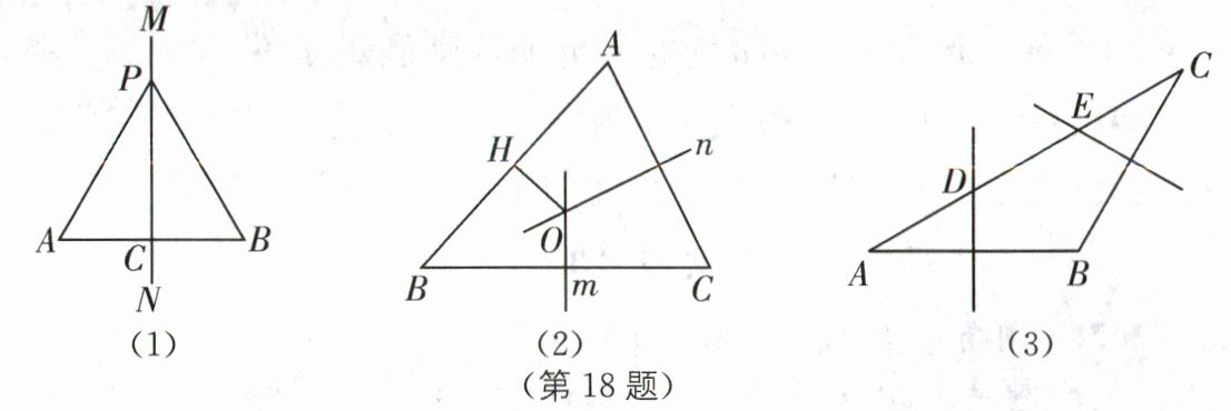 (2)如图(2),在△ABC中,直线m,n分别是边BC,AC的垂直平分线,直线m,n交于点O,过点O作OH⊥AB于点H.求证:AH= BH;