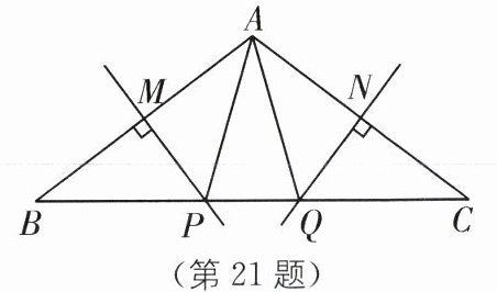 21. (10分)(2024·宿迁宿城区期末)如图,MP和NQ分别垂直平分AB和AC.