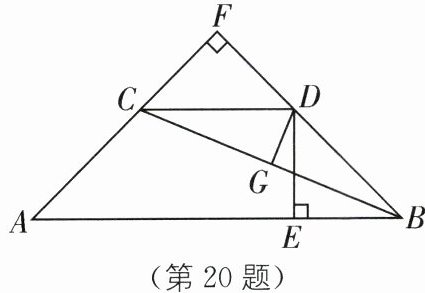 20. (8分)(2024·淮安清江浦区期中)如图,过△ABC的边BC的垂直平分线DG上的点D作△ABC另外两边AB,AC所在直线的垂线,垂足分别为E,F,且BE= CF.求证: