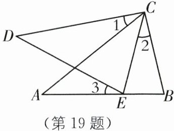 19. (8分)(2025·苏州姑苏草桥中学月考)如图,在△ABC中,E为AB上一点,连接CE,EC= BC,过点C作CD= AC,连接DE,且∠1= ∠2.若∠B= 75°,求∠3的度数.