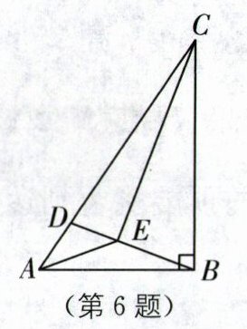 6. 如图,在△ABC中,∠ABC= 90°,AB= 8,BC= 12,D为AC边上的一个动点,连接BD,E为BD上的一个动点,连接AE,CE,当∠ABD= ∠BCE时,线段AE的最小值是( ).