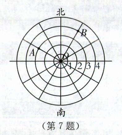 7.(2024·郴州二模)如图所示为雷达图,规定:1个单位长度代表100 m,以点O为原点,过数轴上的每一刻度点画同心圆,并将同心圆十二等分.一艘海洋科考船在点O处用雷达发现A,B两处鱼群,那么A,B两处鱼群的距离是( ).