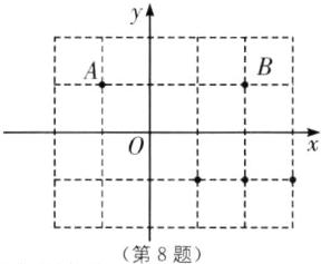 8. 如图,在 5×4 的方格纸中,每个小正方形边长为 1,点 O,A,B 在方格纸的交点(格点)上,在第四象限内的格点上找一点 C,使△ABC 的面积为 3,则这样的点 C 共有( ).