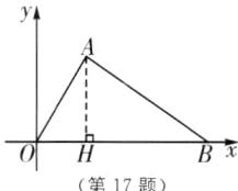 17. 如图,在△AOB 中,OA= 4,OB= 6,∠AOB= 60°,将△AOB 绕原点 O 顺时针旋转 90°,则旋转后点 A 的对应点 A'的坐标是______.
