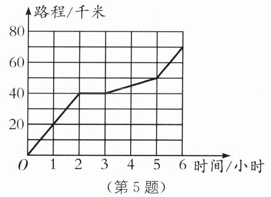 第3至5小时的平均速度为(50 - 40)÷2 = 5(千米/时);最后1小时的平均速度为(70 - 50)÷1 = 20(千米/时);后3小时的平均速度为(70 - 40)÷3 = 10(千米/时).故选D