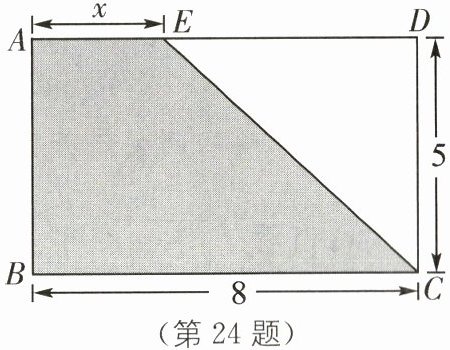 24.(12分)如图,在长方形ABCD中,$BC= 8,CD= 5$,点E为边AD上一动点,连接CE,随着点E的运动,四边形ABCE的面积也发生变化.