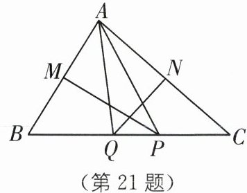 21.(10分)在△ABC中,AB的垂直平分线分别交线段AB,BC于点M,P,AC的垂直平分线分别交线段AC BC于点N,Q.